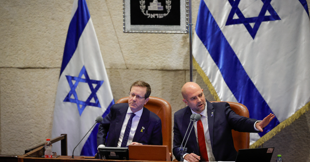 De izquierda a derecha el Presidente de Israel Isaac Herzog y El presidente del Parlamento Amir Ohana